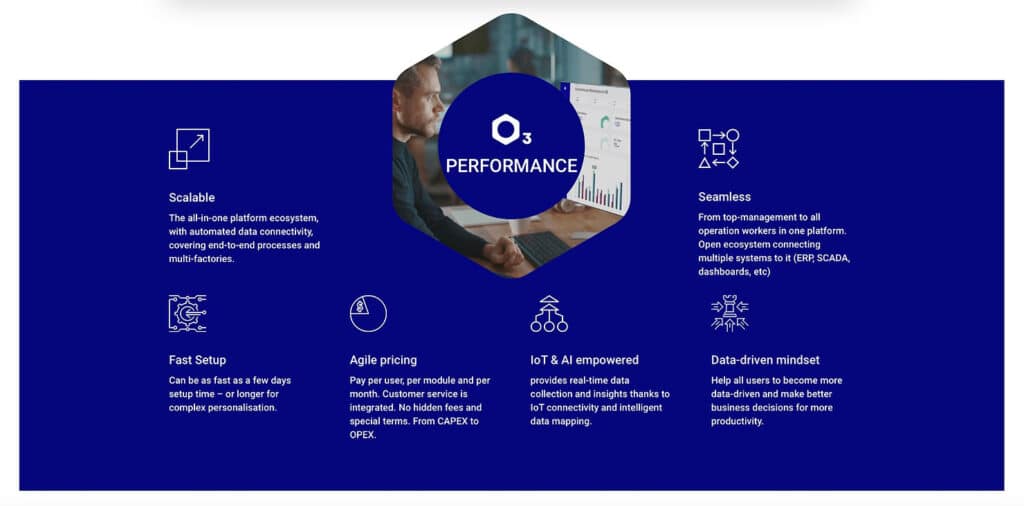 O3 acts as a consultant and specialist for digital manufacturing through an intelligent platform and business system that enables end-to-end digitalization of your operations and provides transparency and flexibility. Our platform adapts to all business needs and aims to optimize decision making by maximizing business productivity and minimizing waste.